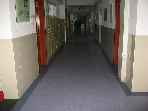 該地板表層的耐磨層具有特殊的防滑性,即使在地麵有水的情況下也能保持良好的防滑效果,降低了學生在校園內滑倒的風險。使用其他類型的地麵材料可能沒有同質透心塑膠地板那樣的防滑性能,這增加了學生在校園內滑倒和受傷的風險。
